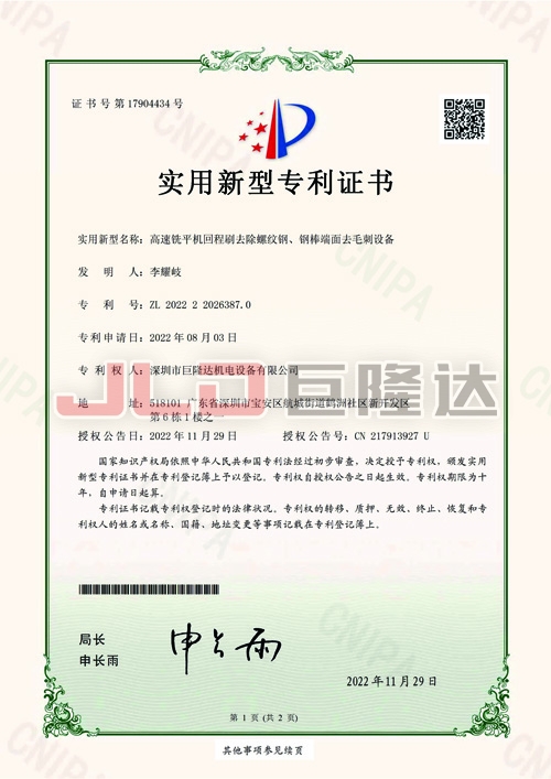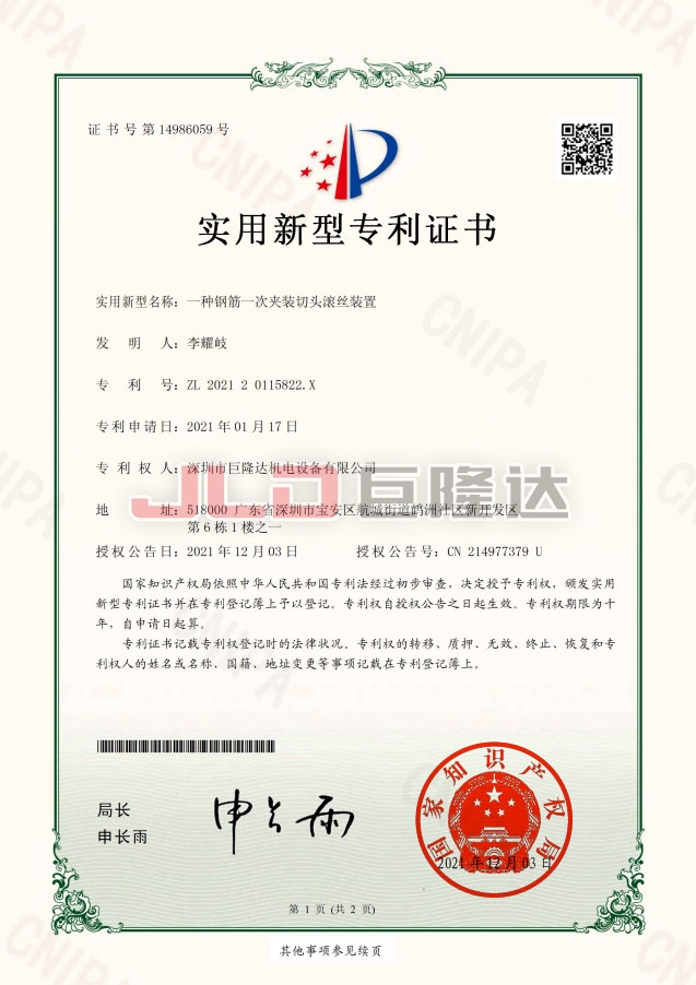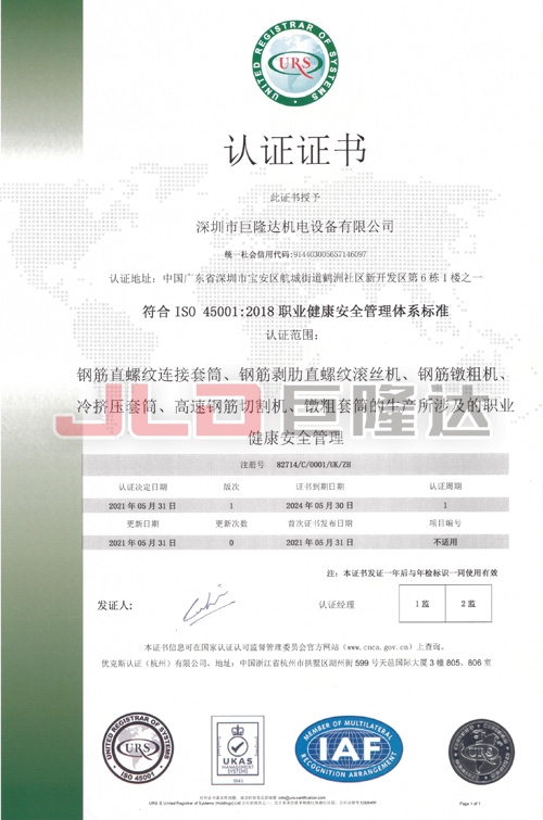 深圳市巨隆達(dá)機(jī)電設(shè)備有限公司成立于 2010 年,是一家專業(yè)生產(chǎn)鋼筋加工成套設(shè)備、連接套筒系列產(chǎn)品的制造商,是一家集研發(fā)、生產(chǎn)、銷(xiāo)售、出口、服務(wù)為一體的綜合型企業(yè)。本公司獲得國(guó)家發(fā)明專利和使用新型專利20余項(xiàng),擁有專業(yè)的研發(fā)團(tuán)隊(duì)、先進(jìn)的生產(chǎn)設(shè)備,完善的產(chǎn)品檢測(cè)手段和質(zhì)量保證體系。通過(guò)了建研院檢測(cè)中心有限公司檢測(cè)、符合英國(guó) UKAS:ISO 9001:2015質(zhì)量管理體系標(biāo)準(zhǔn)認(rèn)證企業(yè)、ISO 14001:2015 環(huán)境管理體系標(biāo)準(zhǔn)、ISO45001:2018 健康安全管理體系標(biāo)準(zhǔn)。達(dá)到深圳市寶安區(qū)環(huán)境保護(hù)和水務(wù)局建設(shè)項(xiàng)目環(huán)境影響審查批復(fù)企業(yè)、榮獲深圳平安金融中心工程 2015年度優(yōu)秀材料、設(shè)備供應(yīng)商稱號(hào)企業(yè),多年連續(xù)榮獲廣東省守合同重信用企業(yè)稱號(hào)。